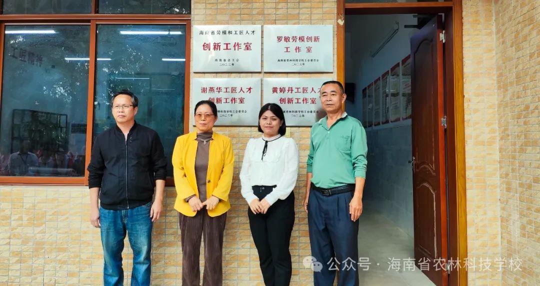 (学校领导、五指山市总工会领导和工作室成员合影)