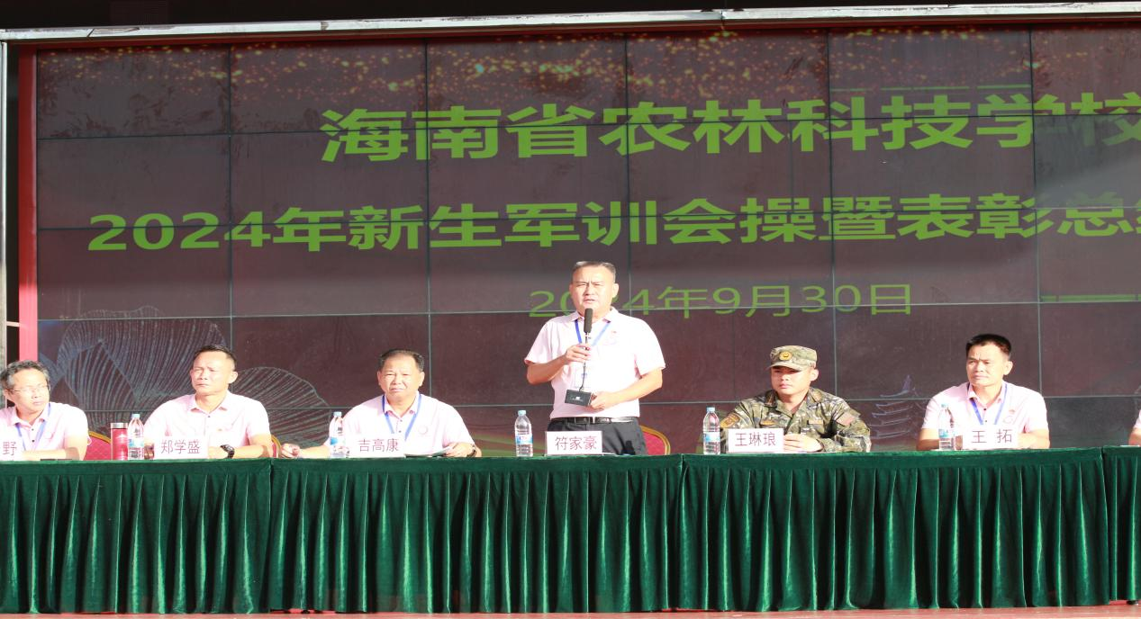 9月30日上午,我校在运动场举行2024年新生军训汇演暨表彰总结大会。学校党委书记符家豪、校长吉高康,武警海南总队儋州支队机动大队机动一中队队长王琳琅,学校党委委员王拓、郑学盛等全体师生共同见证了这一荣耀时刻。大会由学生科负责人陈金主持。