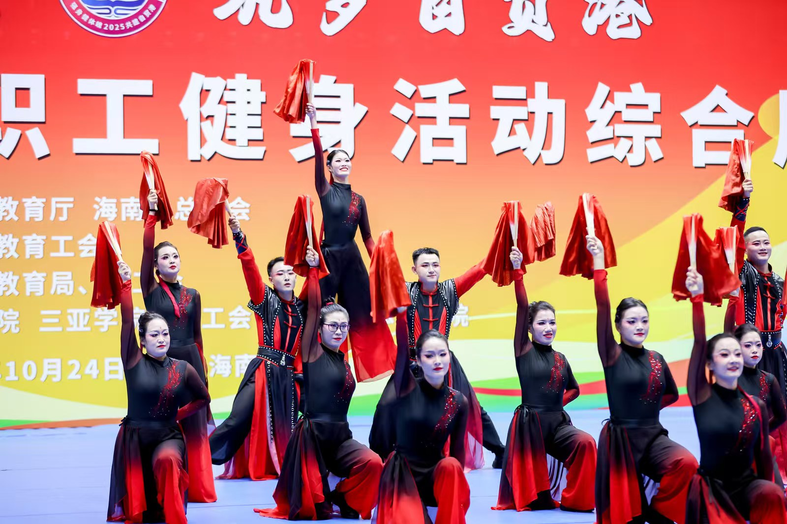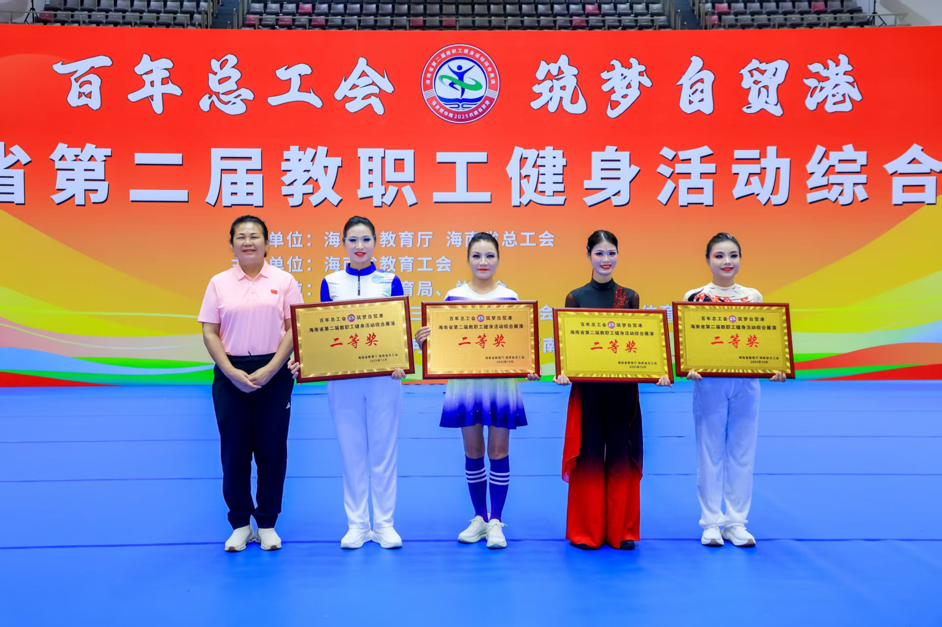 ? 10月26日,以“百年总工会 筑梦自贸港”为主题的海南省第二届教职工健身活动综合展演,在三亚学院书艺馆圆满落下帷幕。我校教职工代表队凭借健身操作品《回马枪》奋勇拼搏,最终在厅直属和省属学校组中脱颖而出,斩获二等奖,生动展现了我校教职工飒爽昂扬的精神风貌与团结进取的良好形象。