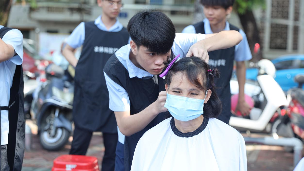 我校进入毛纳村开展“技能展示”活动,附近村民纷纷前往现场,路人也驻足品尝甜点“作品”、体验义剪等学生技能展示项目,并热情与我校师生交流甜点制作、制茶沏茶等技能的过程与方法。