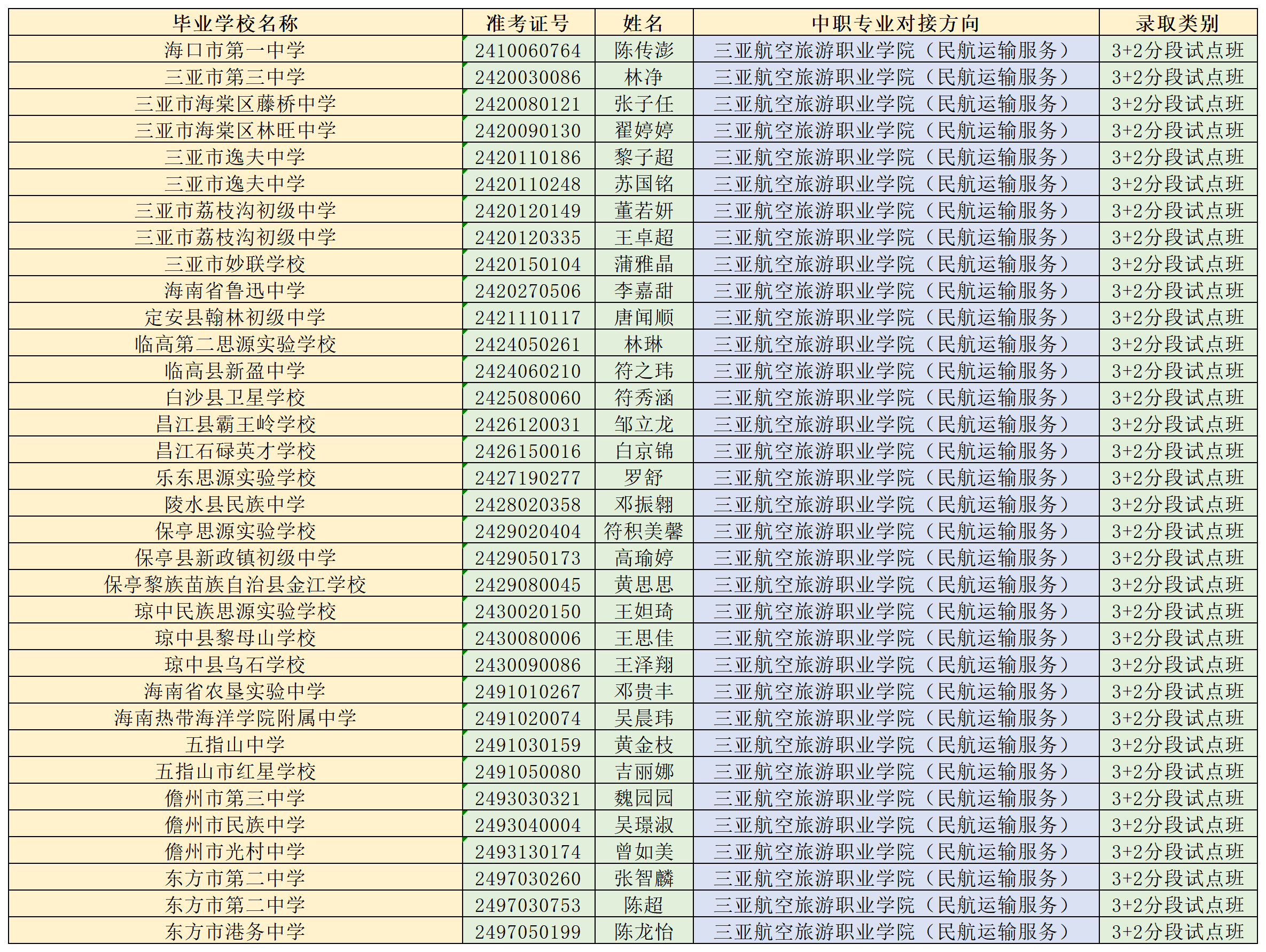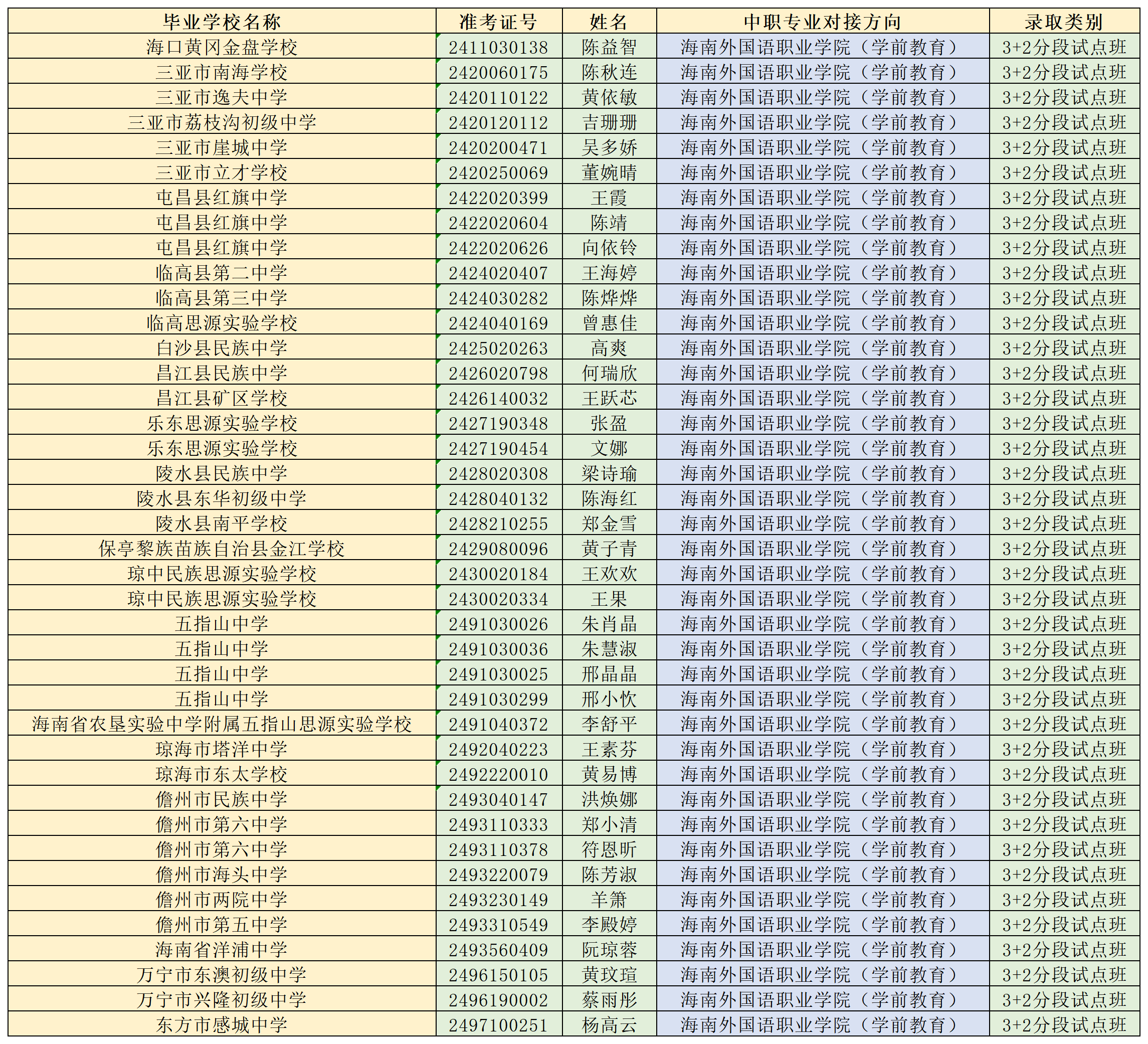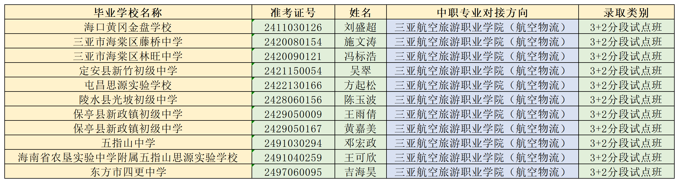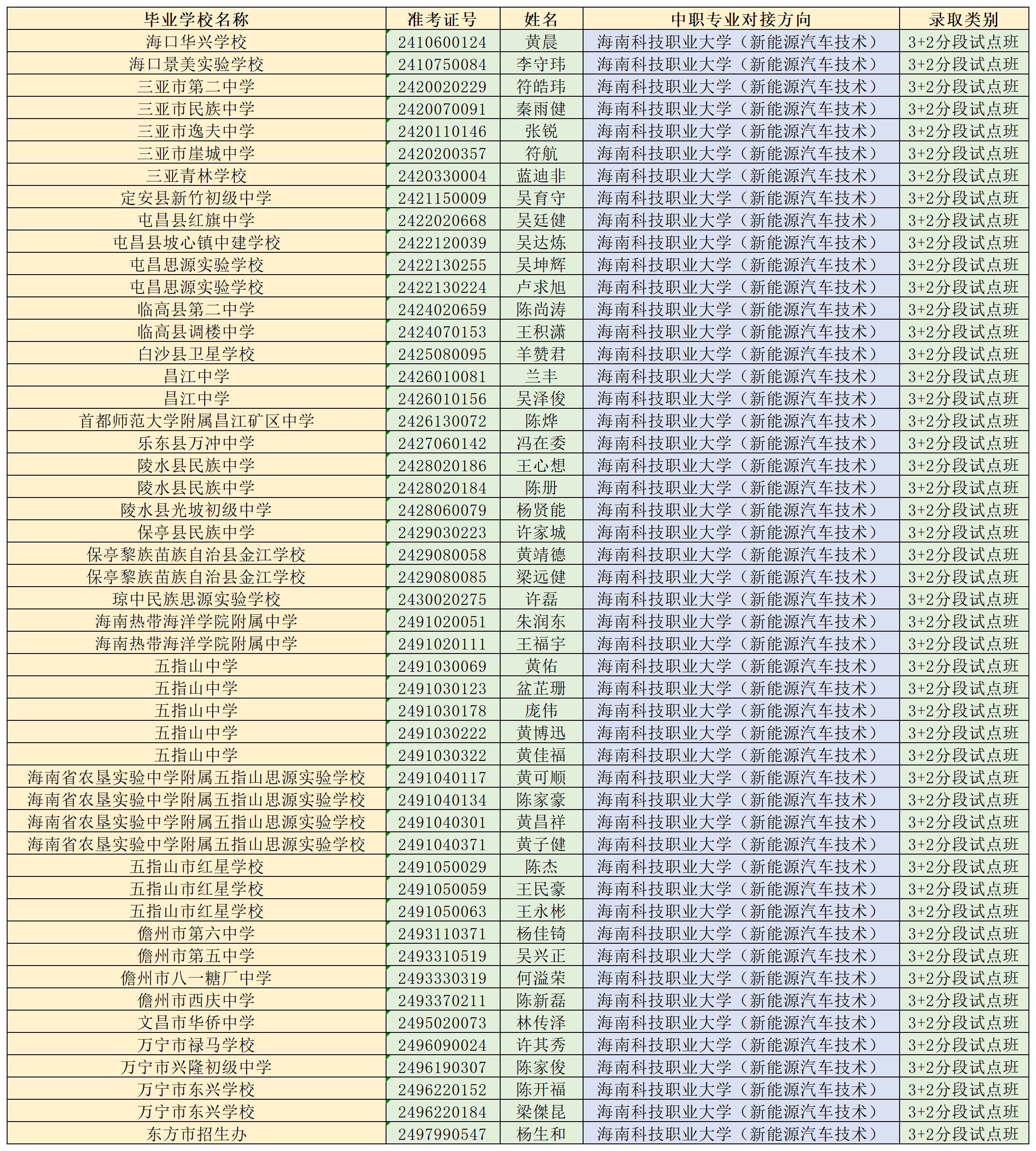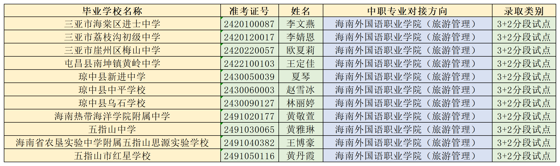 海南省农林科技学校2024年“3+2”连续、分段贯通培养项目各专业录取名单公告
