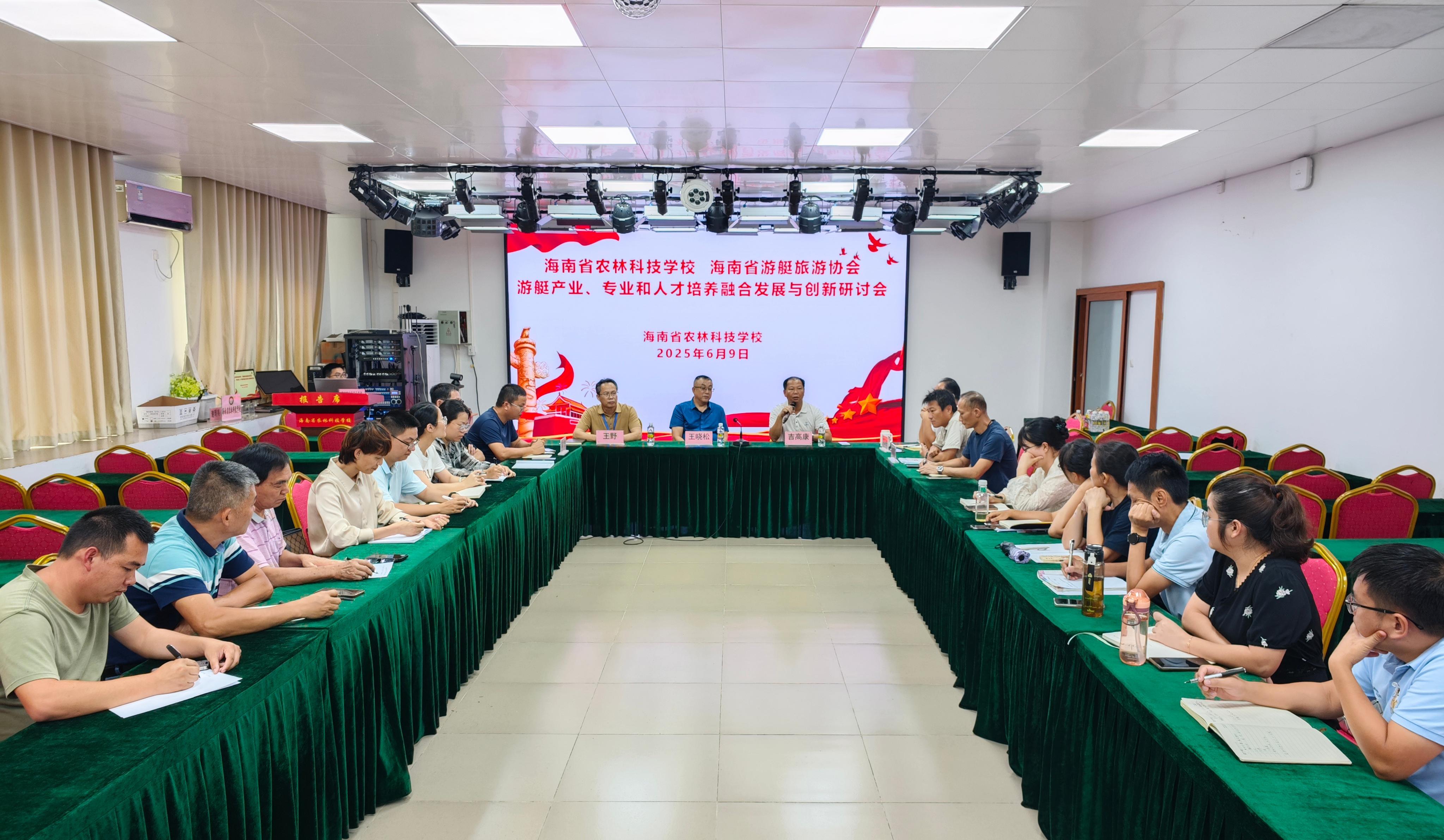 2025年6月9日下午,海南省农林科技学校与海南省游艇旅游协会联合举办“海南省农林科技学校、 海南省游艇旅游协会游艇产业、专业与人才培养融合发展与创新研讨会”。海南省农林科技学校校长吉高康、海南省游艇旅游协会海洋文旅专业委员会主任王晓松、教务科长王野、学生科招就办和农机、旅游教研室负责人及教师代表参会,围绕海南游艇产业发展、职业教育专业建设及人才培养模式展开深度交流。