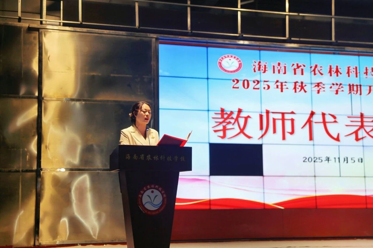 ??班主任授聘仪式上,校领导们为23-25级班主任郑重颁发聘书。一纸聘书,承载的是学校的信任与重托,它将进一步强化班级管理责任,更好地守护学子们的成长之路。颁奖环节点燃全场热情,“三好学生”“优秀学生干部” 等先进个人与海南省“新时代好少年”朗诵比赛、校内技能竞赛获奖学子依次受奖。荣誉证书承载着对过往的嘉奖,更以榜样力量引领全体同学向优秀看齐,勇毅前行。